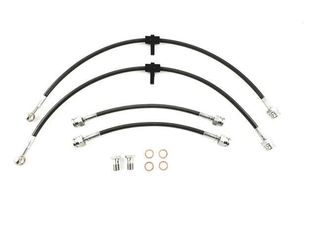 • Full set of stainless steel braided brake lines (front and rear) to replace OEM rubber flexi lines